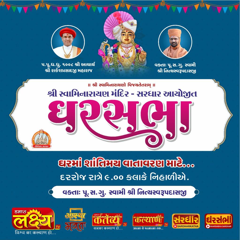 - June 22, 2020 — The 100th Gharsabha was celebrated at Tirth Dham Sardhar, marking a strong foundation.