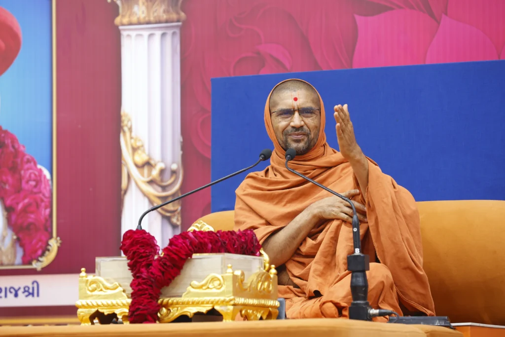 This teaching is deeply reflected in Pujya Swamishree’s life. His guiding principle is:
