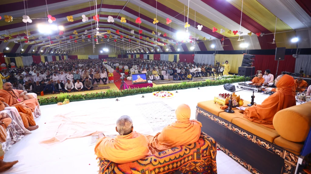 For the past five consecutive years, Pujya Sadguru Swami Shri Nityaswarupdasji has conducted Gharsabha every single day from 9:00 to 10:30 PM, without missing a single day. What began as a humble daily spiritual gathering has become a living example of unwavering commitment, discipline, and devotion.