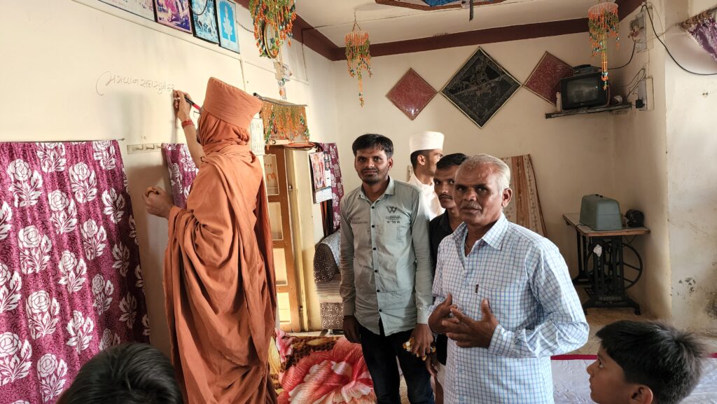 Throughout his life, Pujya Swamishree has conducted numerous padhramanis (pilgrimage visits). For the Murti Pran Pratishtha Mahotsav in SardharDham (2021), Swamishree undertook over 24,000 padhramanis in preparation for the festival. Witnessing the heartfelt devotion of the devotees, he set a goal to complete 100,000 padhramanis, inspiring countless souls along the way.